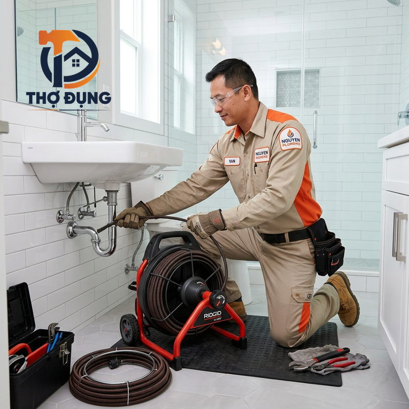 Thợ Đụng xử lý thông cống nghẹt và hút bể phốt chuyên nghiệp bằng máy móc áp lực cao.